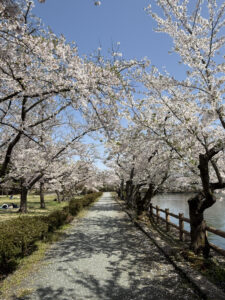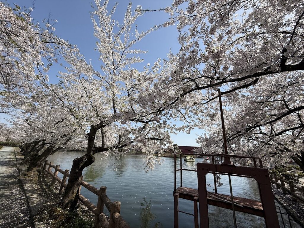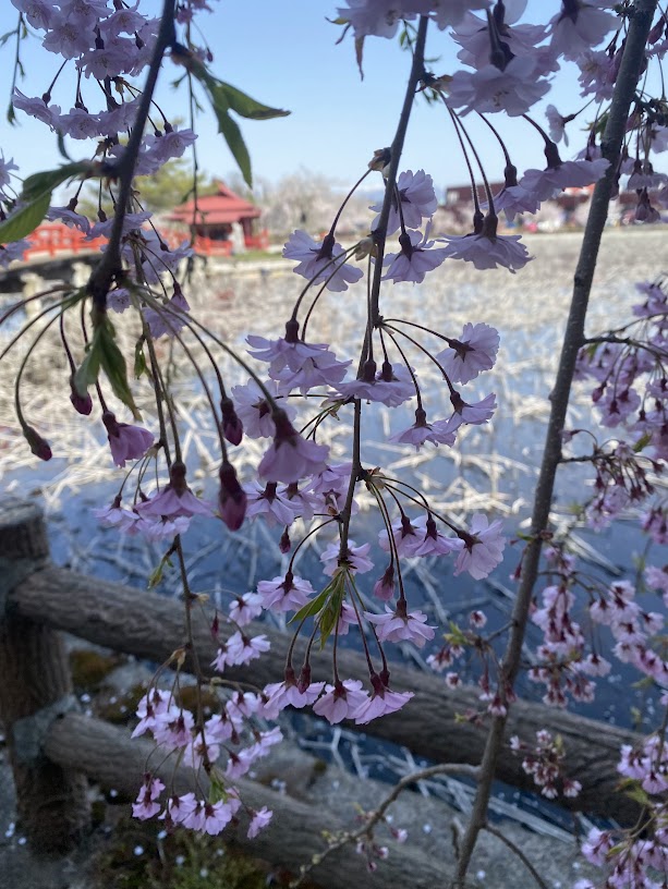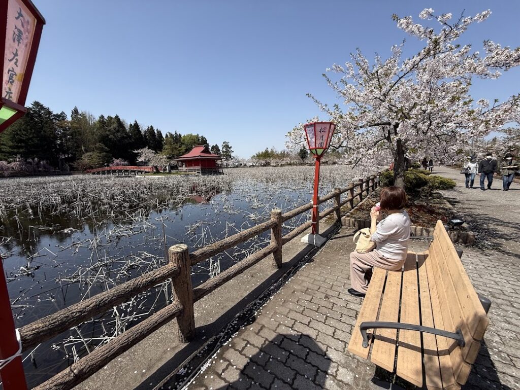 連日さくらシーズのお客様を向かい入れてにぎわっている4/20、民泊業の合間を縫って我々も近所のお花見スポット「猿賀公園」にお花見兼お昼ご飯を食べに行きました。当ゲストハウスからは約6㎞、車で15分、徒歩だと1時間~1時間半ぐらいでしょうか。車だとすぐの距離です。散歩好きの方なら田舎館の道の駅の田んぼアートを見学した後に猿賀公園、盛美園などめぐるトレッキングコースがいいと思います。