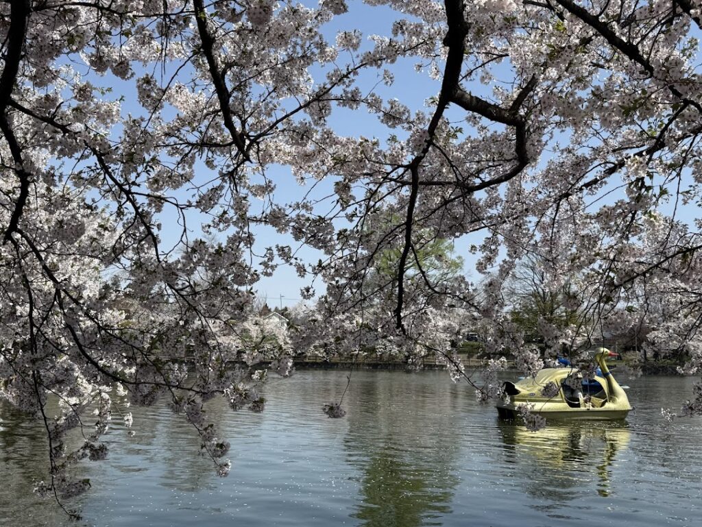 餌やり場の近くには、色鮮やかな鳥居があり、「こいこい神社」と呼ばれています。鯉だけに恋焦がれる人を思いながら餌をまくと成就するとかしないとか。知らんけど。ボートも乗れます。金色のスワンボートはかなりな存在感でした。子供のころに乗ったかな?もう50を過ぎた夫婦だけでは乗ることは無いでしょう。孫ができれば乗ることはあるかもしれませんね。